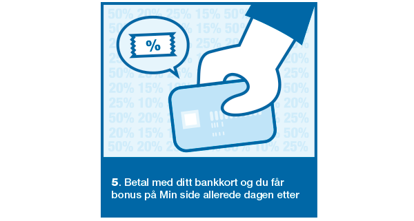 Alt skjer automatisk. Alt du trenger å gjøre er å bruke ditt vanlige bankkort (knyttet til registrert kontonummer) når du handler. Du trenger altså ikke et ekstra kort!